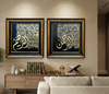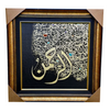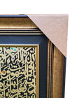Set against a deep black textured background, the names shine in radiant Gold Leaf. A unique "curtain" of intricate, smaller calligraphy represents the abundant blessings that flow from His mercy.