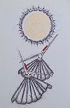 The contrast between the raw, energetic sketch lines of the dancers and the precise, glowing gold of the sun creates a visual metaphor for the journey from the earthly to the divine.