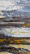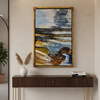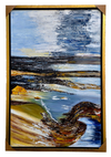 Feel the refreshing breeze of the ocean with "The Windswept Shore." This expressive painting portrays a rugged coastline using heavy palette knife strokes to create a rich, tactile surface of cerulean blue, stormy white, and deep charcoal.